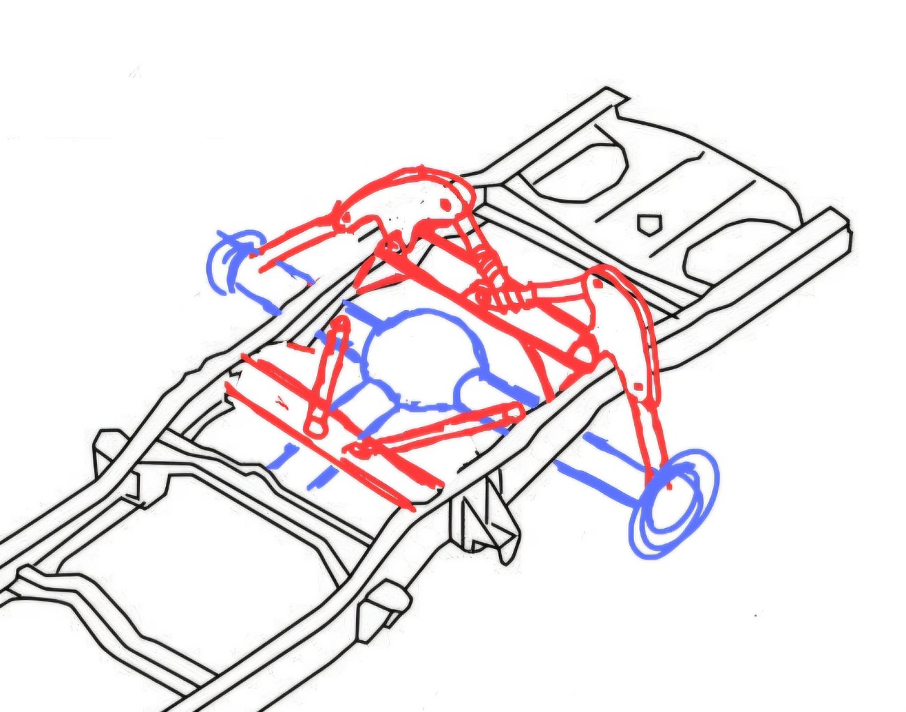 Working on a 5 speed 97 with a 2.3. I've flipped the axle on top of the leaf springs to lower it and I'm going to change out the shocks with some coilovers to help with ride quality and what not. But I've been thinking, is it possible to do an almost IRS style cantilever setup? I've kind of rough sketched the idea here. I don't know squat about suspension, but I do think it would interesting since I haven't seen anyone do one like this before. Any suggestions, tips?