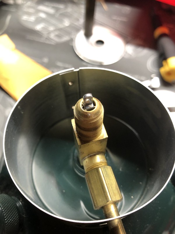Tore down the CL2 tonight. The early ones had a plastic eccentric which was noted for melting if the lantern was ran at high power for very long. The definition of "early" and 'late" is pretty vague so basing it off the fact mine didn't have the heat shield like the later 288's I figured it had the plastic eccentric... so I snagged the later potmetal one. It is what connects the valve knob to the schrader valve to actually vary the fuel flow to adjust brightness on these later lanterns.