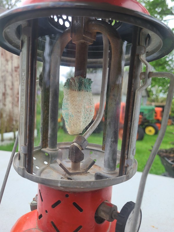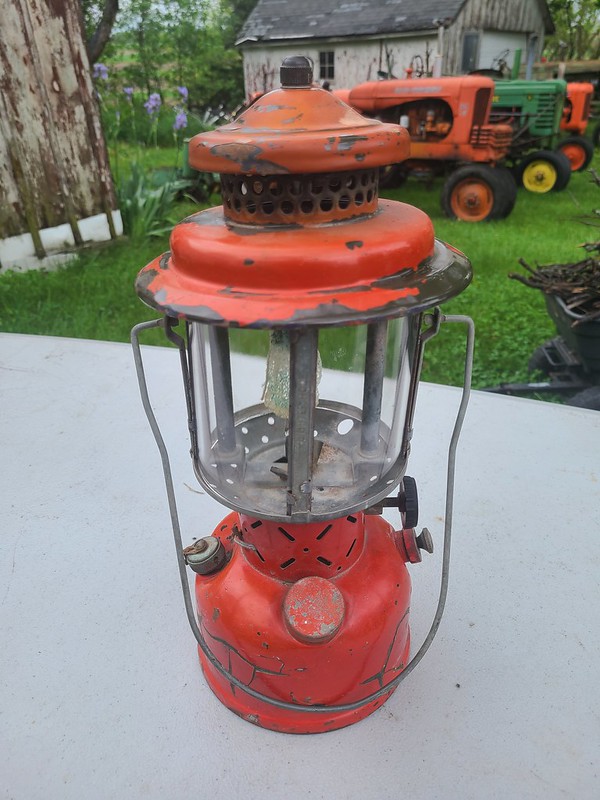 The thing has to be half again heavier than a normal 220 although it is a single mantle. Dual air tubes and of course the crazy gen. The "globe" is four curved panels that slide in tracks. I have heard they really are not all that great to use especially compared to a civilian lantern... I have wanted one since I got into the hobby and they are really scarce around here.
