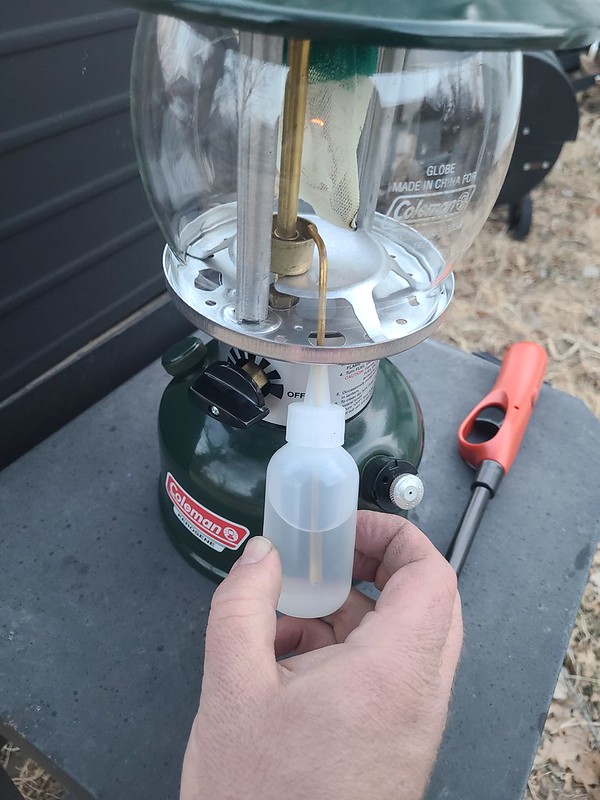 Lighting process is rinky dink enough to be interesting but surprisingly effective. Let the little cup burn for what seems like 3 days and as soon as the fuel comes on the lantern is on. When you are done as soon as you close the valve the lantern goes out. No flareup drama at startup and it shuts off like it is electric.