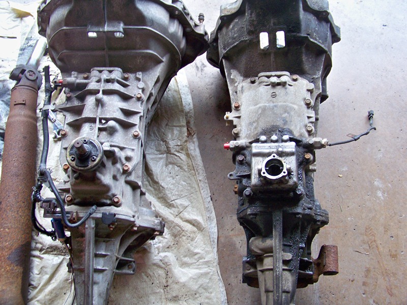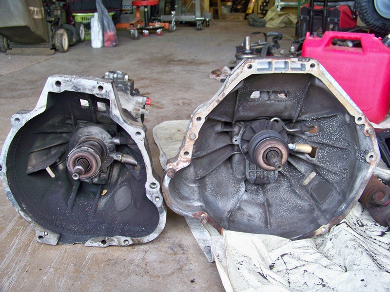 Well I officially started my swap today. I got the old trans out and inspected it along side the new one.