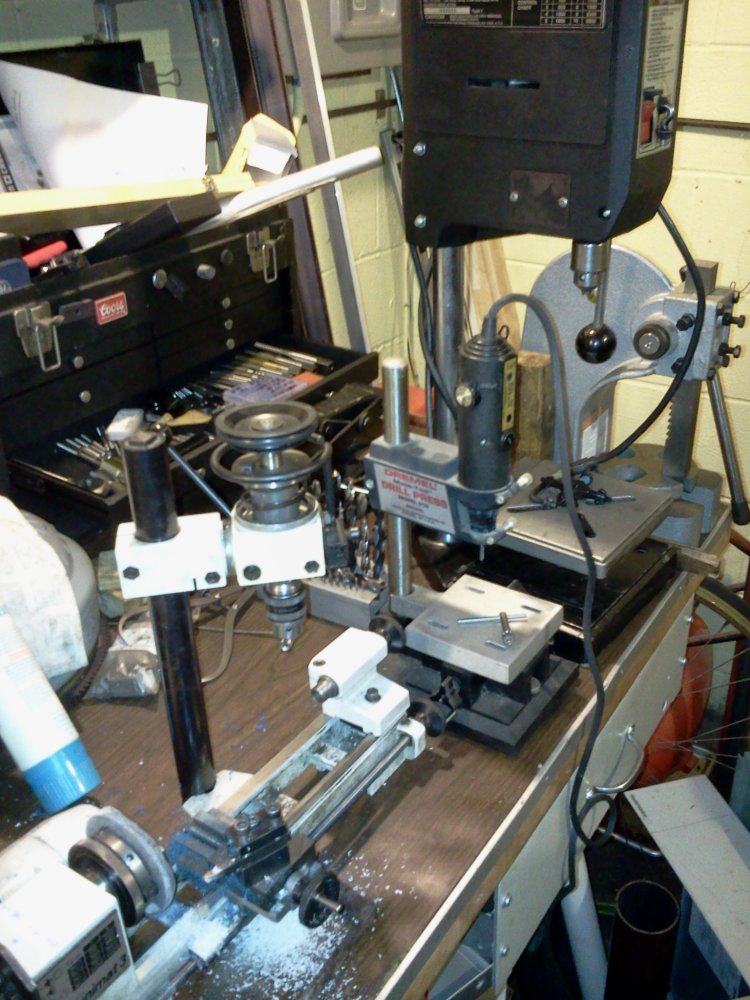 Here's another example if clamping a workpiece to the table. Notice it is on spacers so that I don't drill into the table underneath.