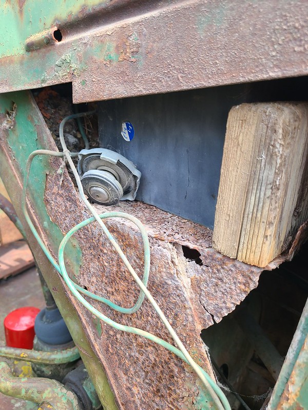 Ok we got it here, lets tie onto whatever this is and give it a tug too. Picked the front of the tractor up and there was a pop and that was the end of that.