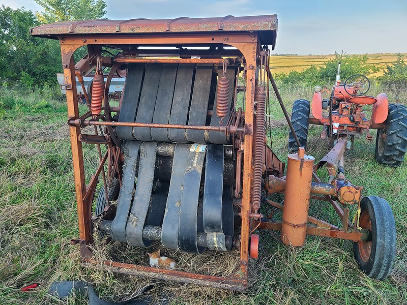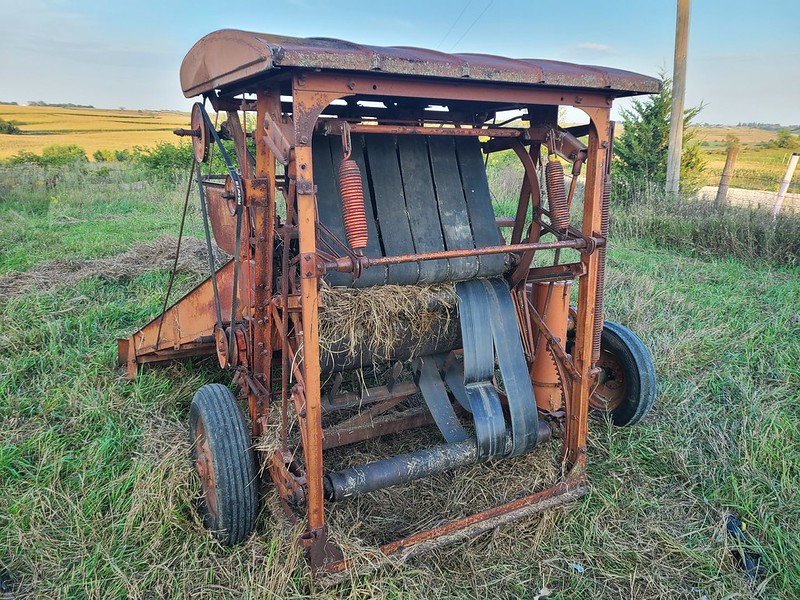 These look simple but unlike a newer one has no hydraulics. Everything is automatic and it works by various brakes, cams and springs. You stop moving, it does it's little dance and presto, you have bale!