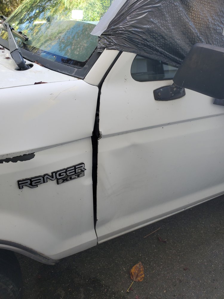 I have a 1992 xlt, and the driver side door is all messed up and bent the front body panel and the door panel itself, its also hanging wrong and cant close, open, or lock properly. Its got power windows (idk if thats relavant). I was wondering if theres any advice on how to fix the problem? Theyre like foot long, inch deep dents on both panels and a bit of a crumple on the door that hits the front body pannel. Any advice on how to rehang the door and pop out the dents would be EXCEPTIONAL, also if theres any interchangable doors from other ford vehicles, thatd be swell knowlege to have too.