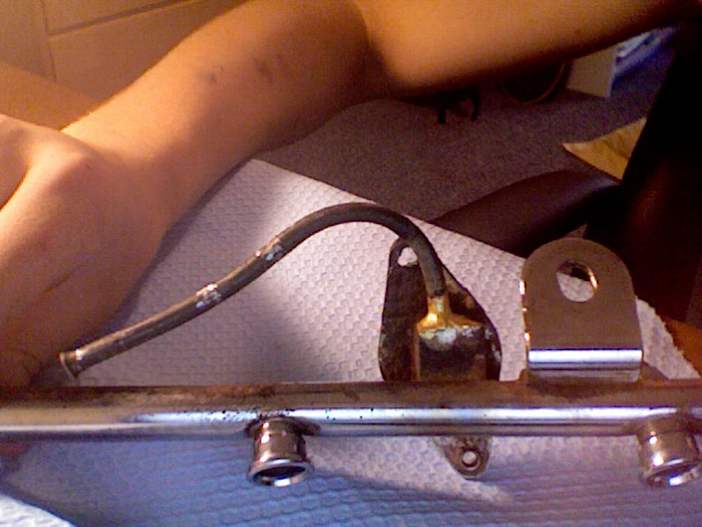 I tried purchasing a new fuel rail, but Ford no longer makes the part. So we grinded off the outlet where we found a hole, and then brazed in a piece of brake line. I reassembled everything and then it seemed to work.