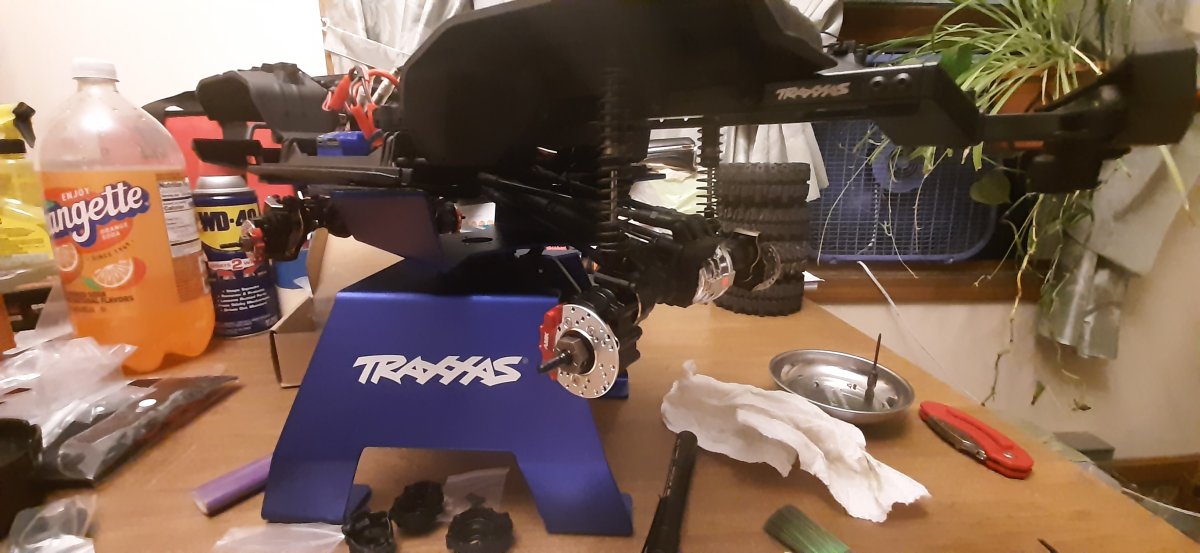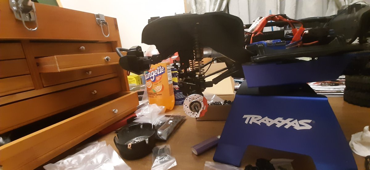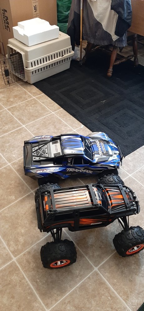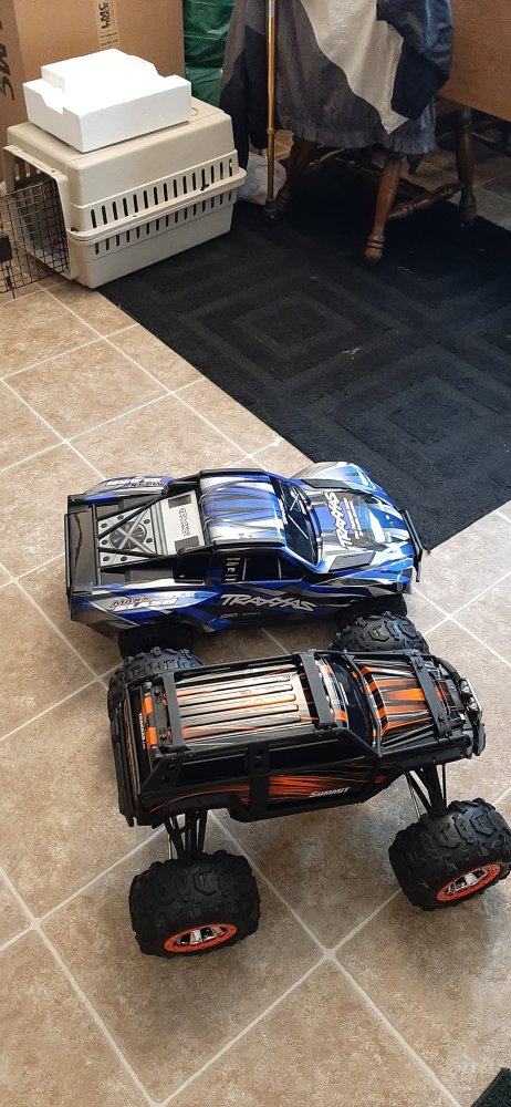 The go box and trucks are going with me so I can play while waiting on my new shocks so I can play with the new beast. The Maxx is down for now but I still have the Summit to beat on for a while. I was able to bind the 2 trucks to the same radio transmitter so that is one less thing to haul around.