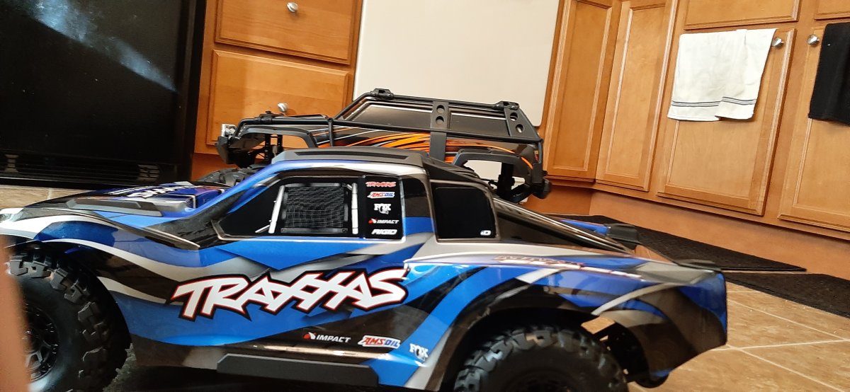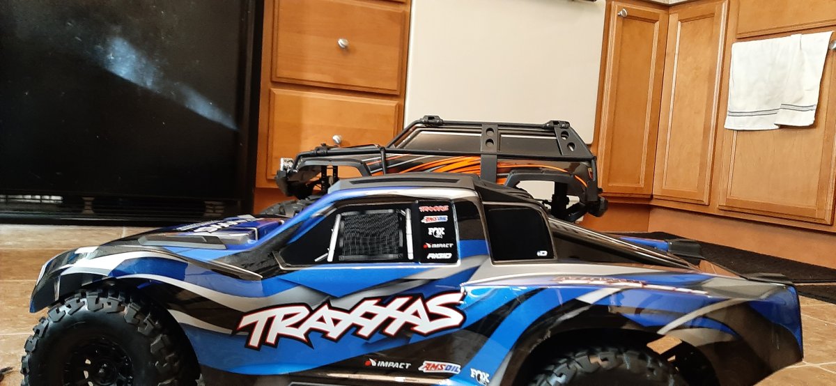 Now this wasn't enough I needed a flat out race speed demon to keep up with my friend with there gas powered cars So a Maxx Slash followed me home and I made the mistake of feeding it 2x 3 cell Lipo battery's. Now its here for good. This thing is impressive, I've yet to to hit top speed with it but it should do 60+mph when I have the room to get it up to that speed.