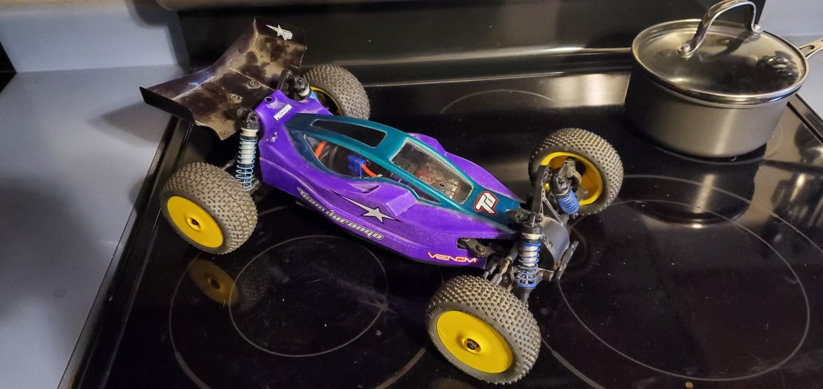 Bent shock shaft. I thought all was good after gluing the skid plate but after cycling the suspension a few times and putting the body on I noticed the right front corner was lower than the left so after inspection here is the photographic evidence of why that side was sitting low.
