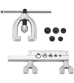 The tool I bought from Napa over 40 years ago looks like this and works fine. I agree that it's important to get a clean cut on the line and file off any burrs before flaring. Practice a few times and go for it. Remember to put the fitting on the line- facing the right way- before you start.