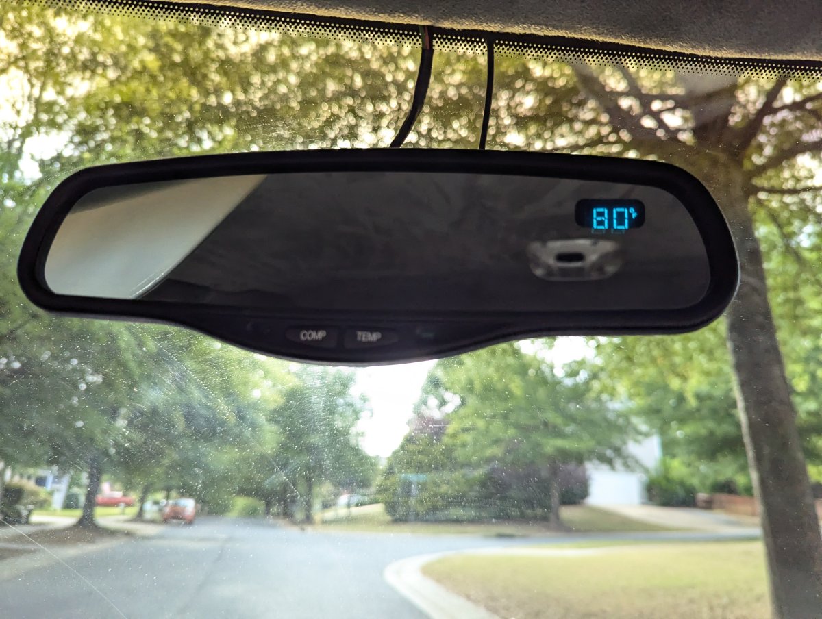 Snagged a auto-dimming mirror with compass and temp from a 99 Tahoe today. Looks pretty good. Larger than the OEM rearview as well, nice for these old eyes :icon_rofl: