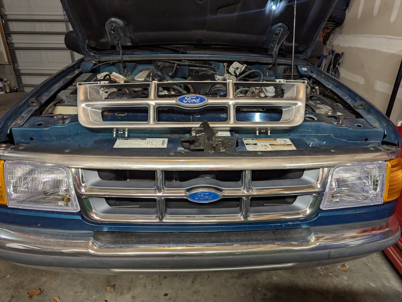 OEM chrome grille from a 94! It's in great shape as well. Also grabbed the throttle cable as well as this is the first 94 4.0 I've found in a boneyard.