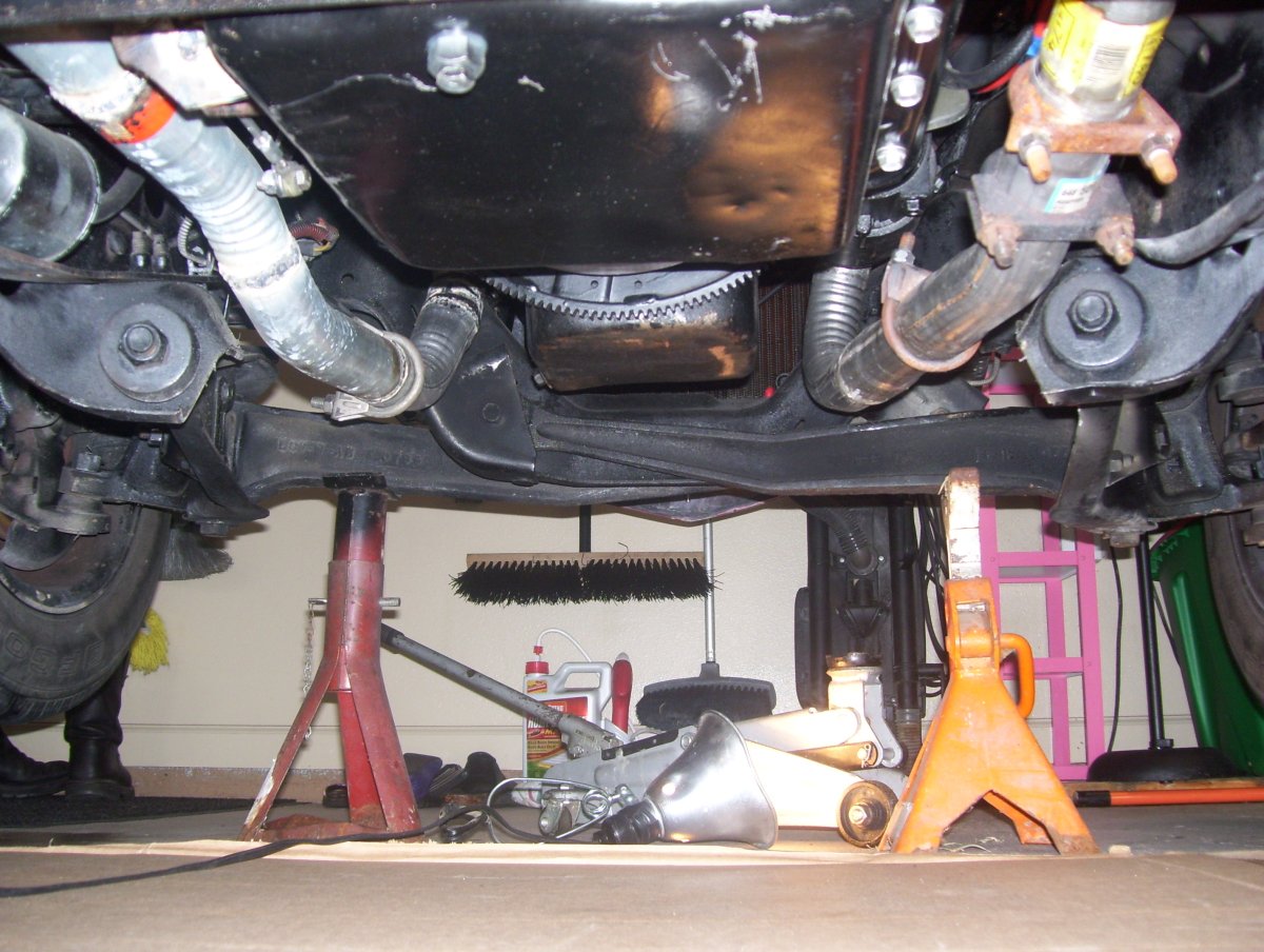 Back to the go-rajj this afternoon to finish bolting the crossmember & Re-(LOL)-shorten the driveshaft.....