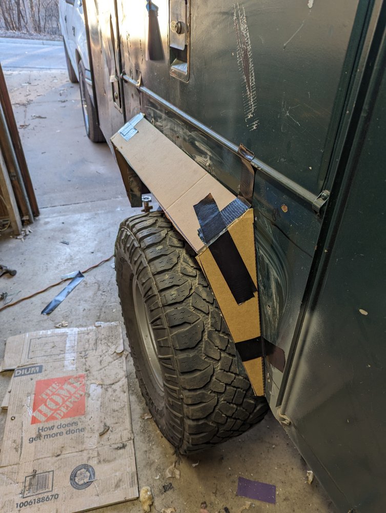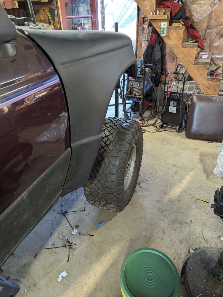 Got my fiberglass fenders in. Definitely an ebay gamble but they fit. Need way more tire though, 37s it is.