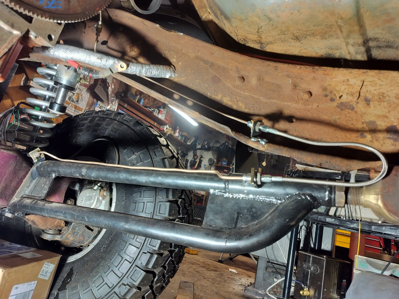 Rear brakes are a disc brake conversion kit for a 31 spline 8.8. My axle wasn't complete when i got it. Front are dana 44 TTB stuff. Master cylinder is an explorer if I remember correctly. I had a dodge cylinder. I realized it was oversized after years of battling soft pedal.