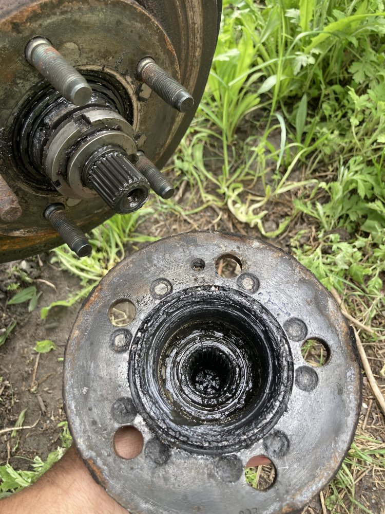 Am also unsure that there should be so much grease all over inside the hubs. I guess it makes sense that all these parts need grease! Or maybe this is a sign of some leak. It’s the same on both sides. This summer I’m planning to dig deep in front with the hubs/bearings/u-bolts.
