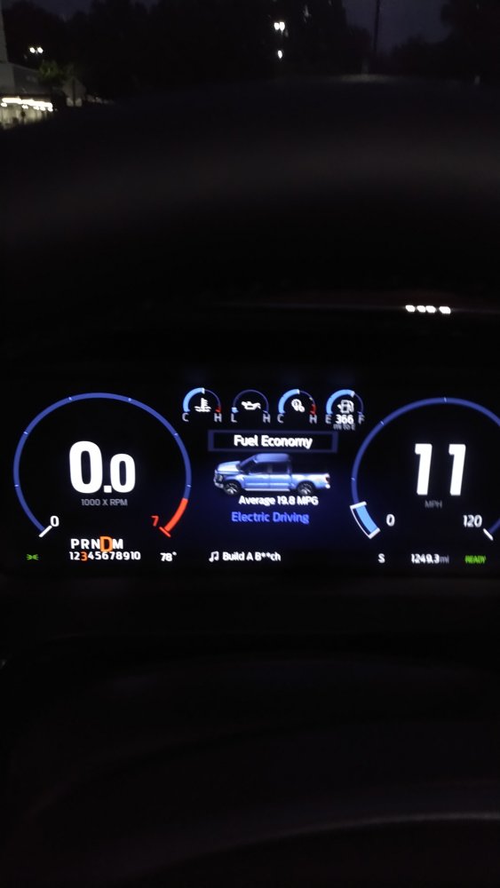 I don't even know how the radio works....it was turned all the way down or off when I got into it....I was too busy listening to the powertrain to notice the radio. ..going from electric parking lot creepy mobile to eco friendly 3.5 liters of tire fires.....
