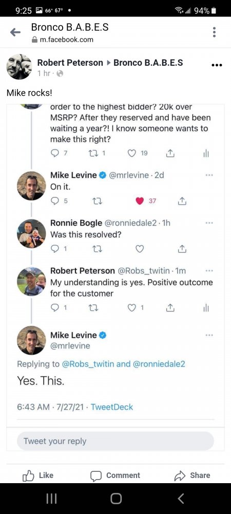 So if anybody else reserves a Bronco and the dealer tries to get you over a barrel... call Ford. It also kinda went viral to the point the dealer pulled their facebook page...