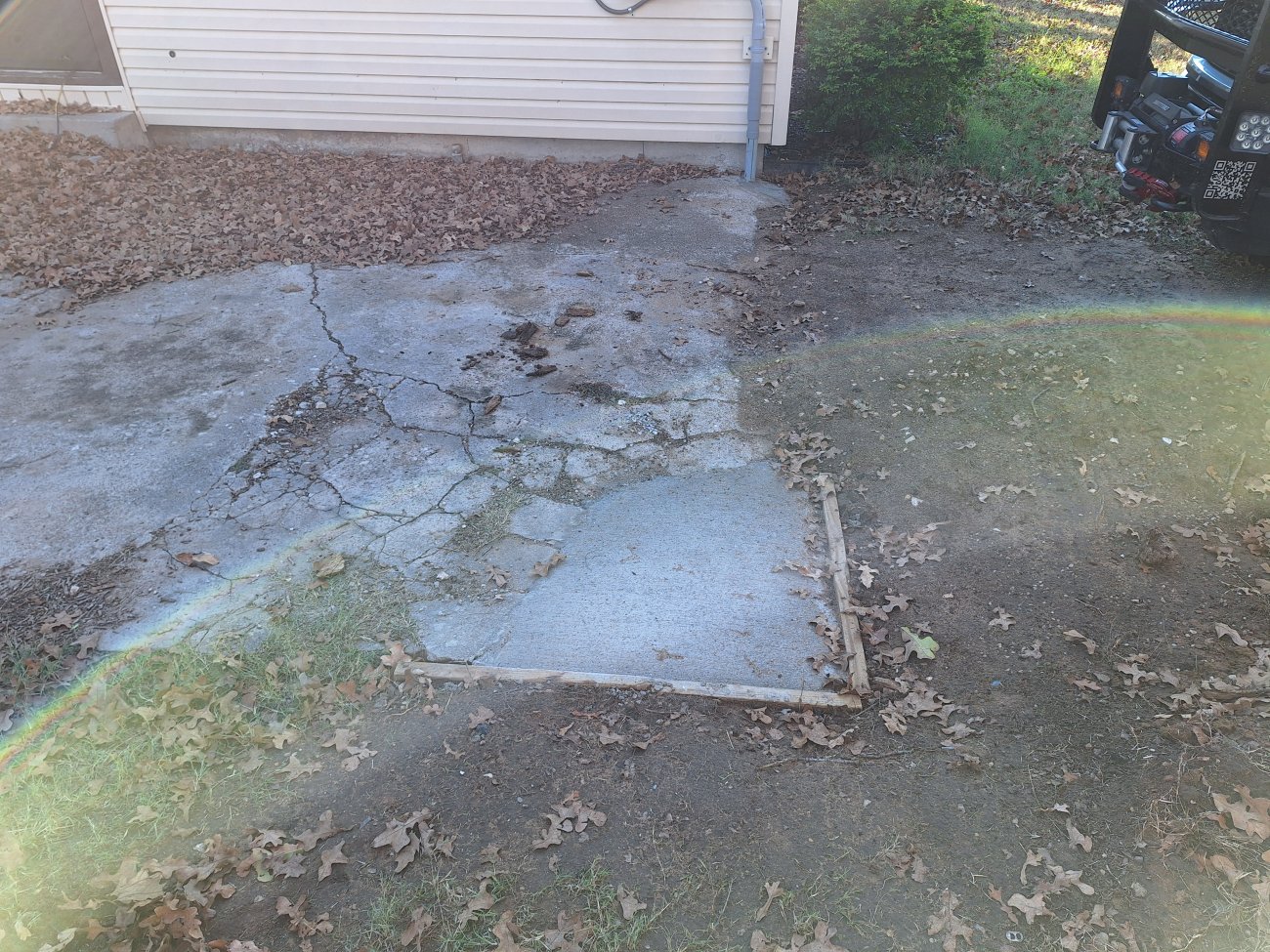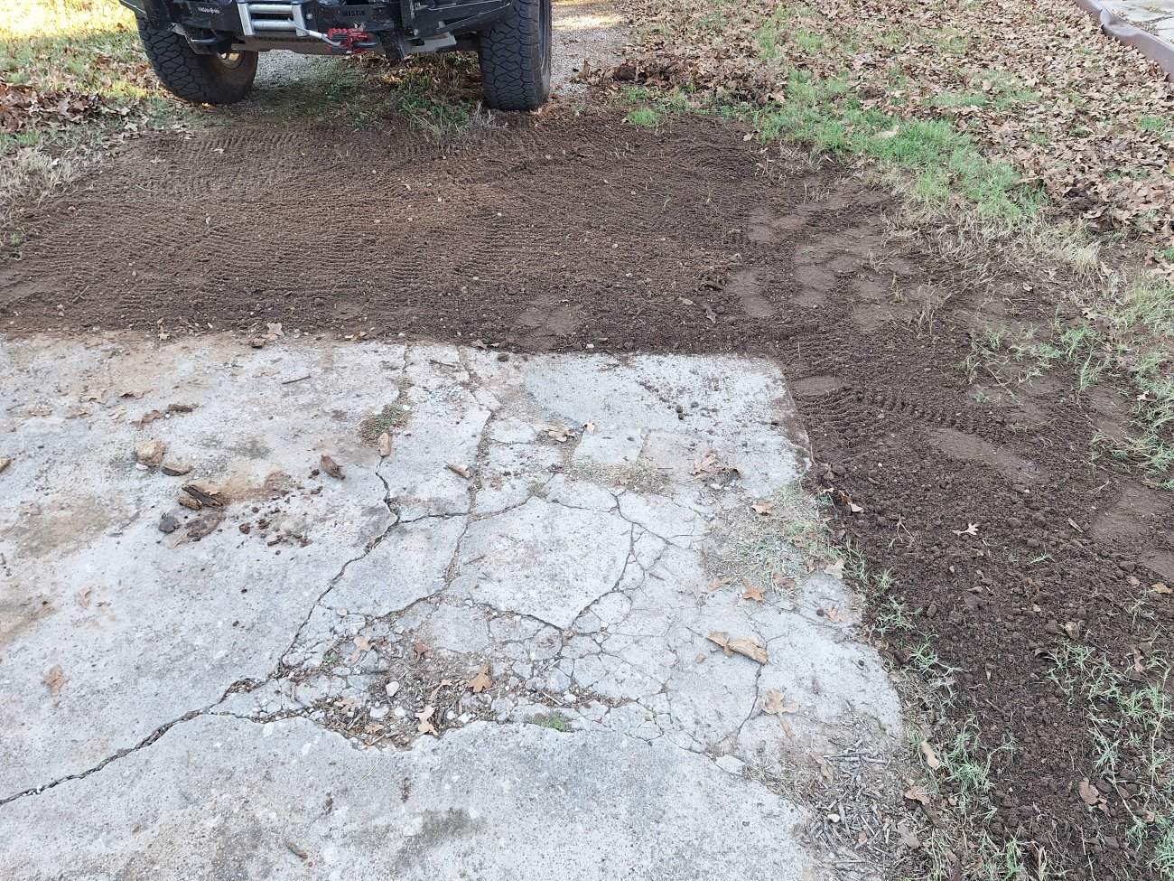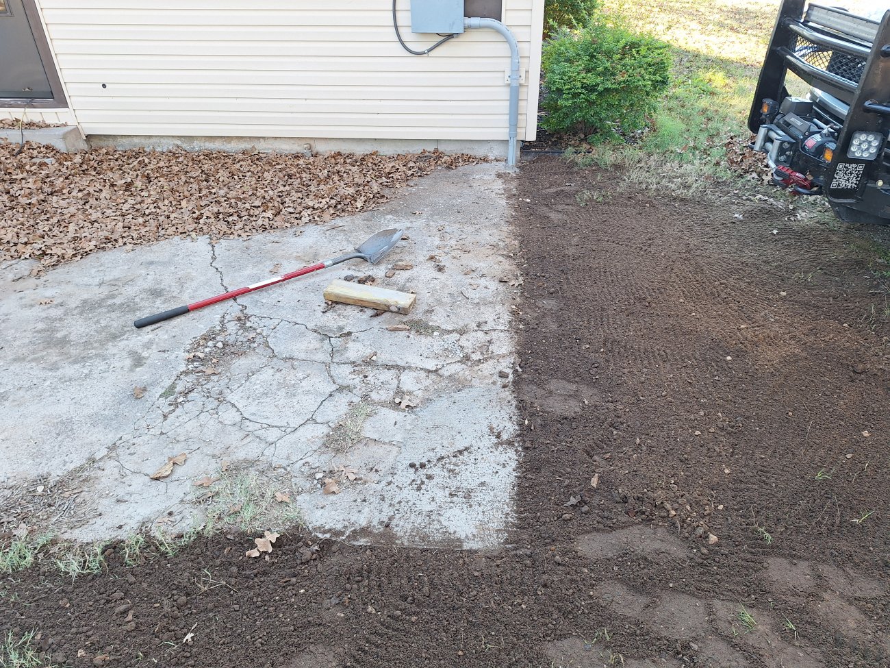 This whole corner is kind of sunken down. I wanted to make it level with the rest of the concrete, but then it would have stuck up to high.