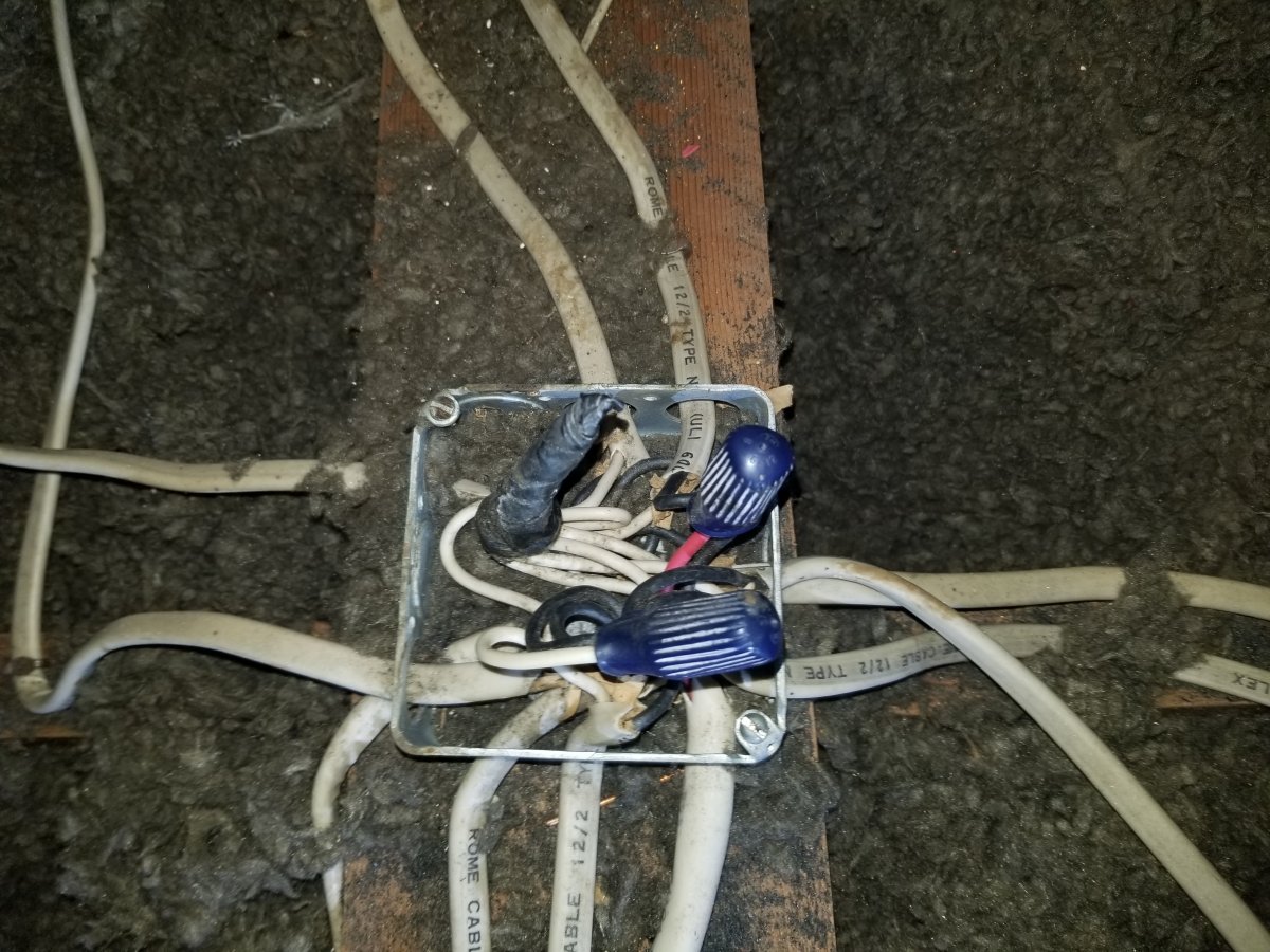 I opened up the ceiling and looked around. I found that the main building and the rear addition each has a junction box near the center of the ceiling.