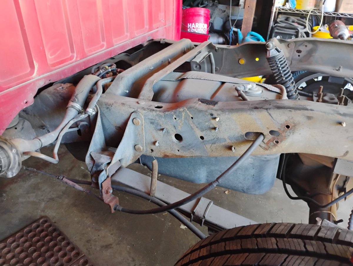 Thanks for your reply and the photosGot the truck home, drives straight as an arrow. Removed the bed and checked dimensions, The chassis is square side to side but has a 3/8 drop on the left rear chassis, probably due to overloading. The Chassis is in very good rust-free condition with very light surface rust that comes off with the callouses on my hands.