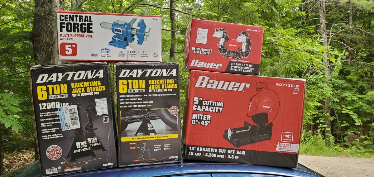 Vice and bench grinder because my 'shop' didn't have either, always used a buddys.