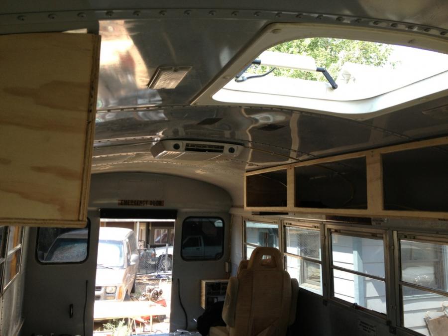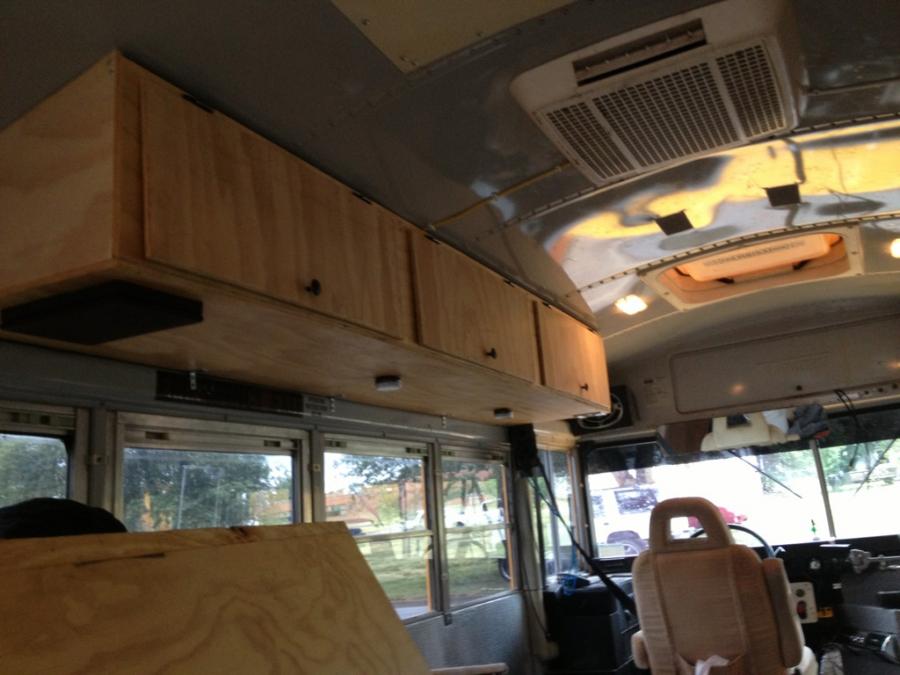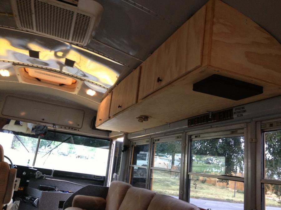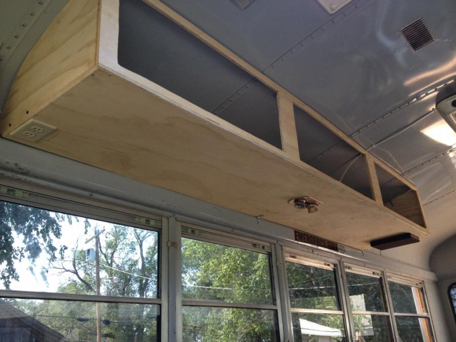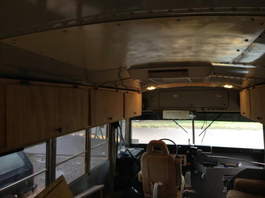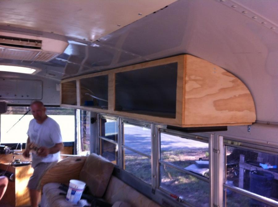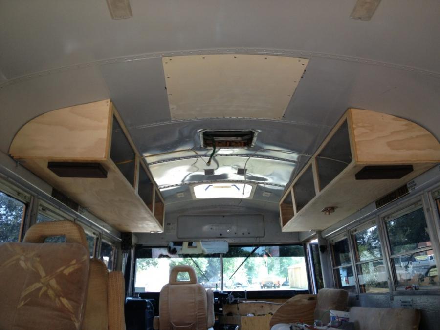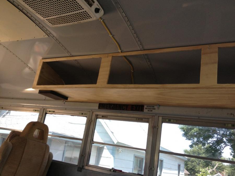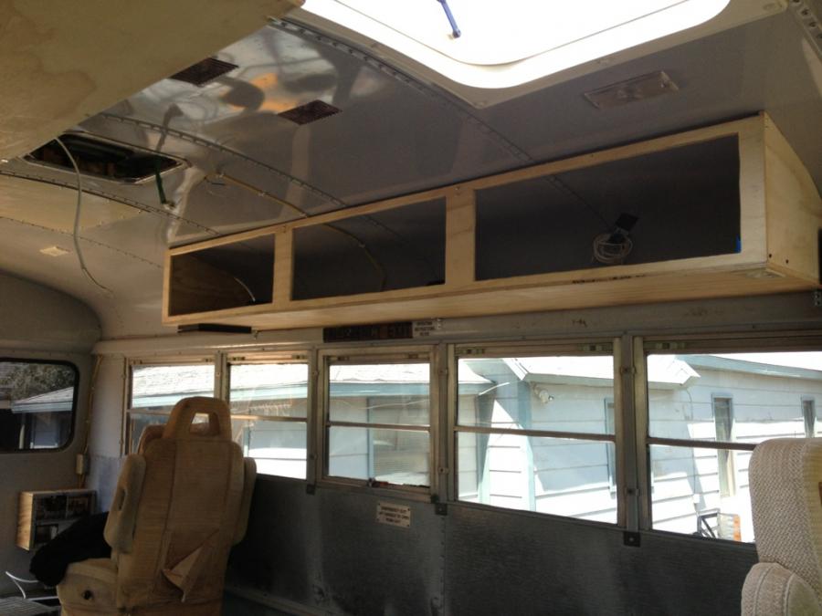 A question, how did you attach the overhead compartments to the ceiling? I am assuming screws through the roof into the wood. if so, how are you keeping rain/ snow/ slush from getting under the screws and leaking into the bus?
