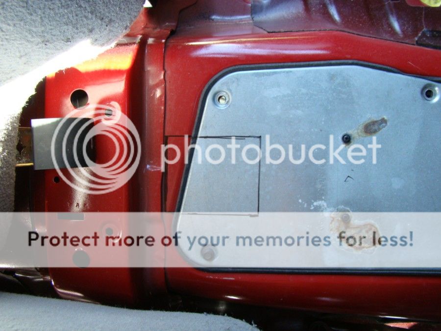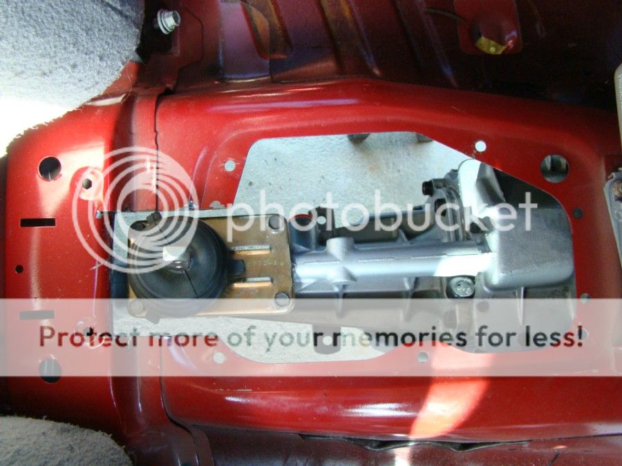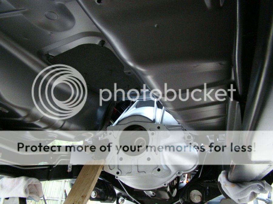 The hole for the shifter was outlined and then cut with a grinder after careful measurements were collected. Then the transmission was raised into place and torqued to spec.