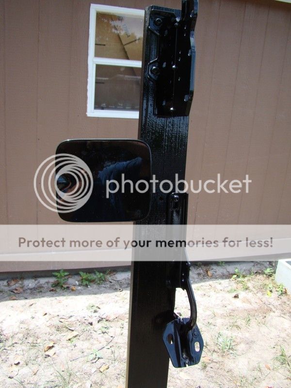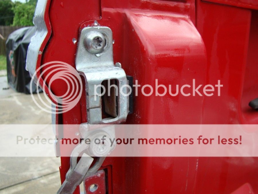Then I removed the bracket on one side at a time to sand the jamb section of the tailgate while the cable on the opposite side held the panel in place. I am trying to avoid laying the tailgate upside down and risking a dent in the now straight sheet metal.