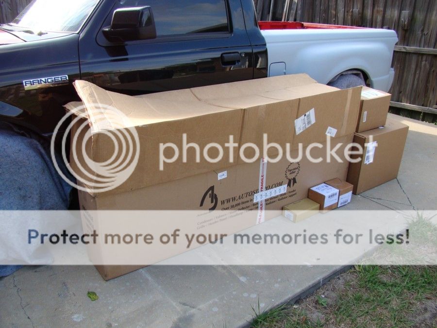 About 3:26 pm today I received my proof of delivery from Fed Ex that my parts had arrived. I couldn’t wait to get home and make sure everything was secure and none of the 2011 body parts were on back order. I found the boxes neatly stacked in the back yard next to the truck.