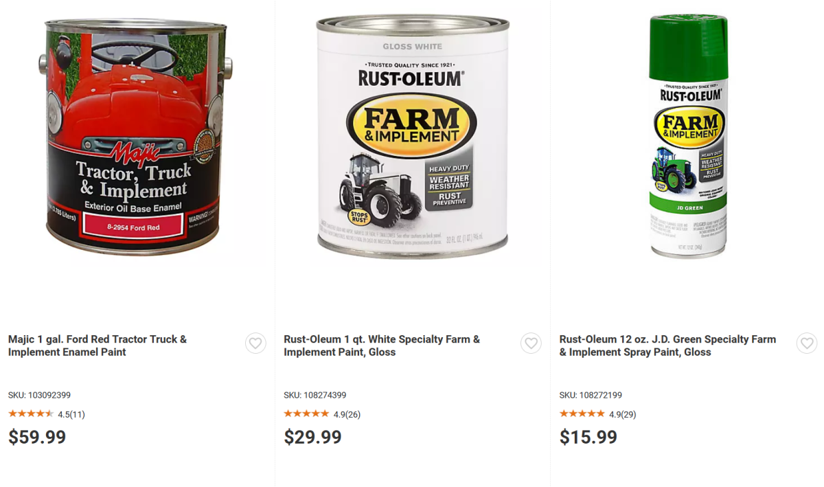I used TSC tractor paint on my old Ranger, and was very happy with the results.