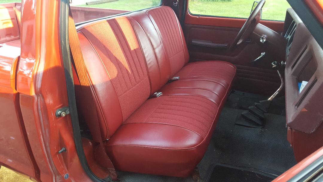 Door panels were pretty easy to do.not bad looking for my first attempt at it.also did the cubby in black vinyl.that was a little more tricky.need to redo it though.didn t use the right spray adhesive on it.peeling off.i used bed emblems from a late 60 to early 70s full size ranger for panels.to pay Homage to the OG rangers.lolTo have seats redone an upholstery place wants to charge like 80 an HR.so that's definitely not top of the to do list at the moment.