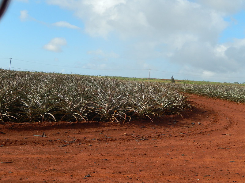 As a native Iowan, land of rich black soil I marveled the whole time how anything could grow in such rocky red soil. At the plantation I learned that pineapple love the iron rich soil and thrive on it. Its funny how everything has its niche. And then on the little train ride deal... what inhospitable looking plants. Guys have to walk down the rows and harvest them by hand. :shok: