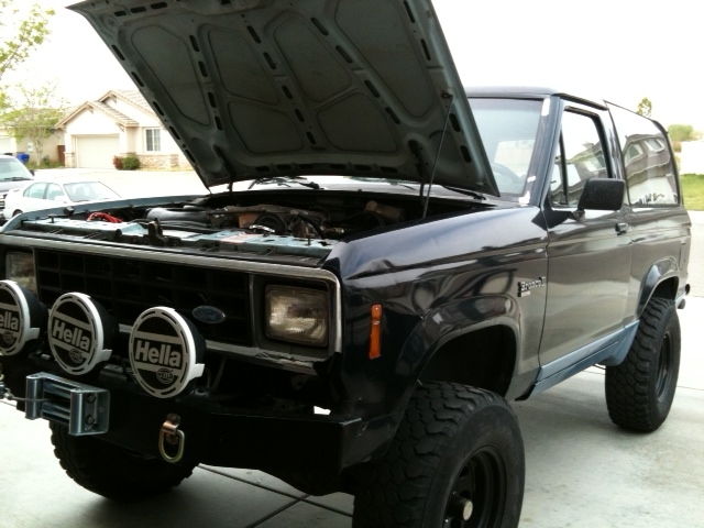 Here is my 88 BII I brought back from the dead. I picked it upfor 600.00 with a blown motor (cracked piston) and totaled front end. Put in a used motor, made my own radius arms, 4" lift kit, made a front bumper with a 8000lb winch, Explorer 4.0 auto radiator,much bigger trans cooler, MSD ignition, 31" tires on black procomp rims. All toghter I spent around 2500.00 so far