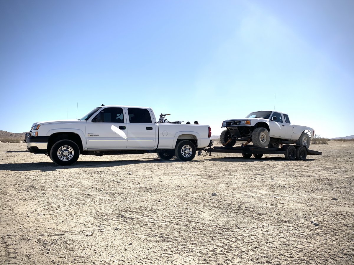 I been trying to find pics of towing the dump trailer and the bronco. i have seen them before...just dont know who took them. i tow the bronco and my little car alot....usually with a tow bar though because i have to borrow a trailer now. i have had too many get stolen to spend top coin on another one.
