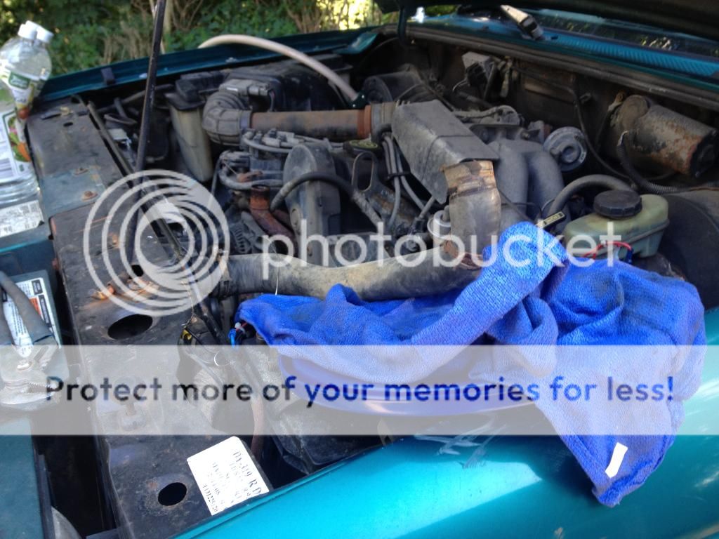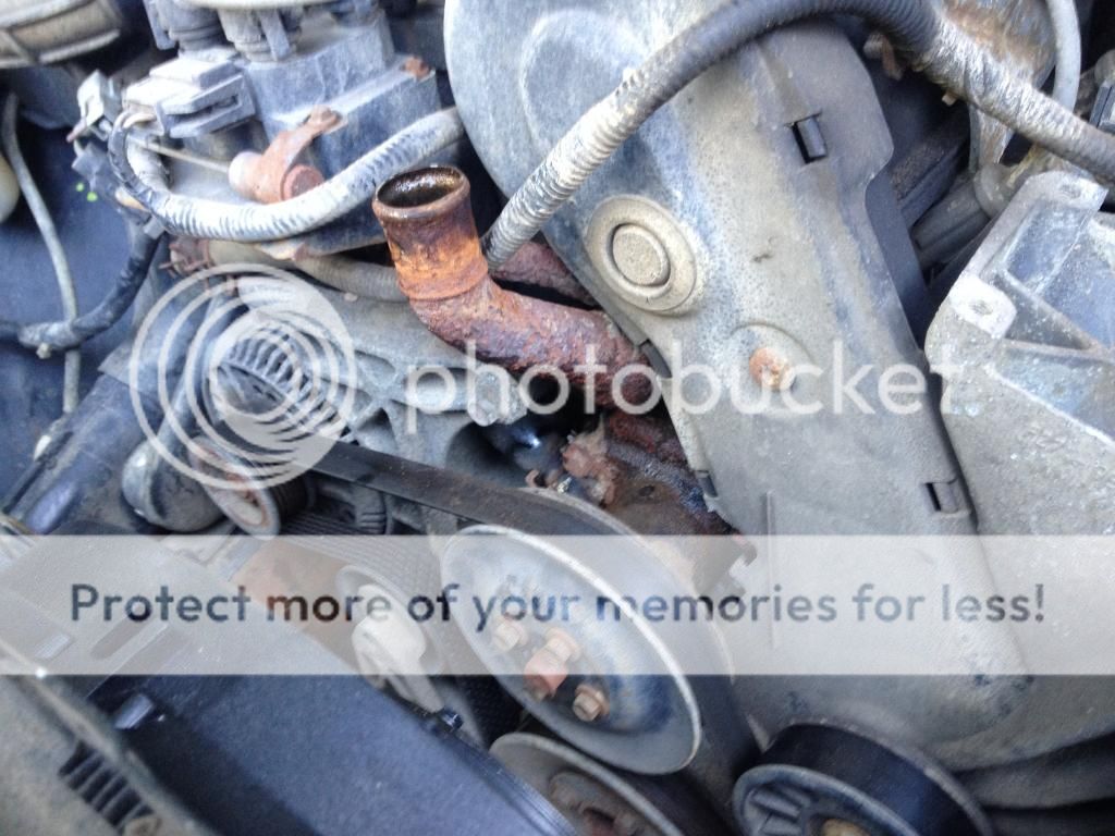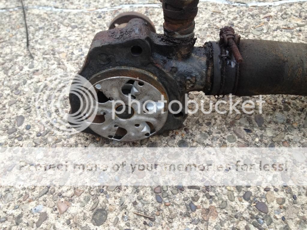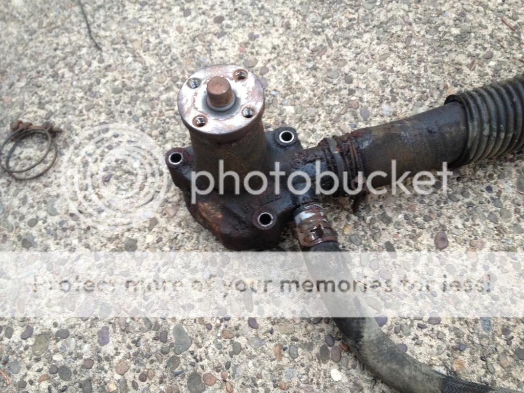 Everything came out rather easily... which scares me. I am replacing the heater hose attached to the water pump. It was really dry rotted near the outlet. I was pleasantly surprised to find the bearings and water pump still in decent shape (205,000 miles on them). I am gonna clean it up and throw it on the shelf for a spare.