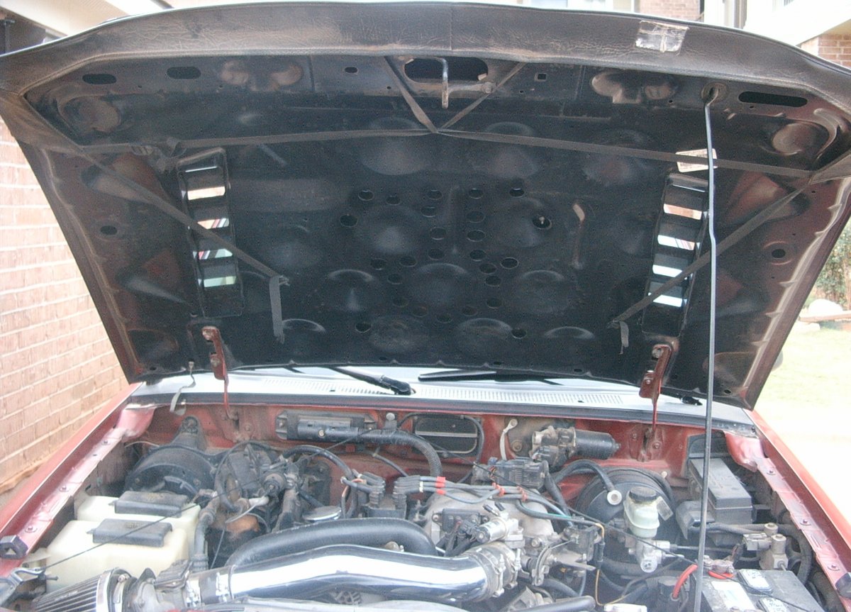 @Waldoduhh Try shimming the back of the hood, up by the windshield, up with washers. @PetroleumJunkie412 did this to his ranger for cooling purposes, but it might allow more airflow under your hood, to help your truck run as if there was no hood on it.