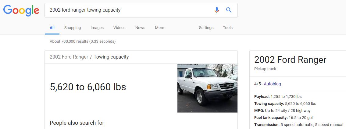 Straight from Ford, assuming you have an automatic in your 2002 Supercab, the possible tow rating range is 3680-5880 pounds.