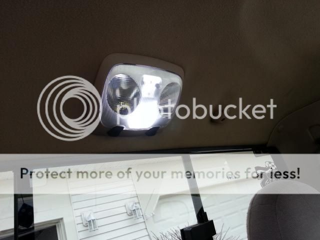 Anyway, a small little update, I got an explorer dome light a little while ago from a jyard cause I didn't like the mustang one I had and I finally got leds for it. They are a lot brighter then the regular bulbs. No before pics, just after with the leds.