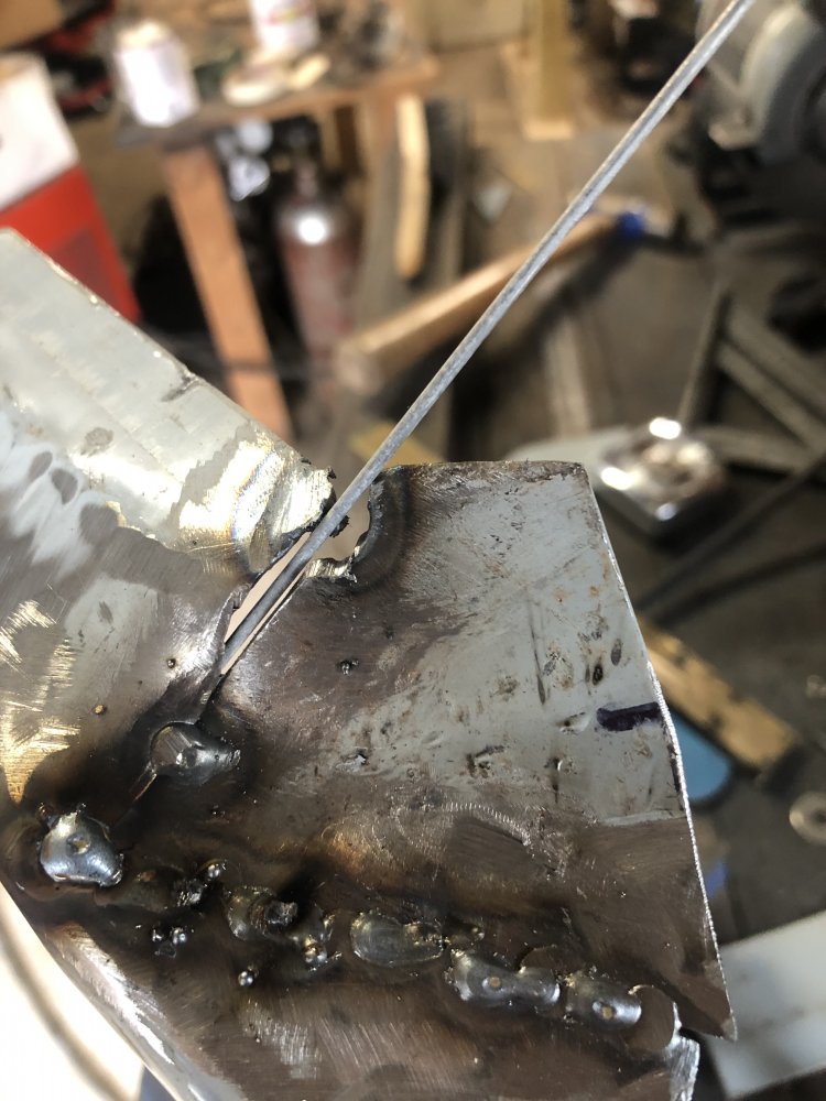 Did a bad job with the fit up on the last edge i needed to weld up, so I used a 1/16" 6013 rod that I scraped the flux off to help bridge the gap. I've seen this trick used to weld a gap from both sides with an Stick welder, so I figured why not. Cleaned the flux off so I didn't end up with a bunch of slag in my weld.