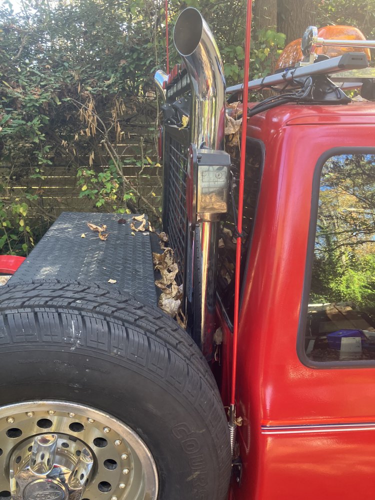 Sooooo, I am going to move them around to the side, but not right now, there are so many other things to do first. But I don’t want to be without a radio, so I’m going to put a temporary up on top of the headache rack. I don’t want to be without the radio when I’m riding up and down the road with the long trailer.