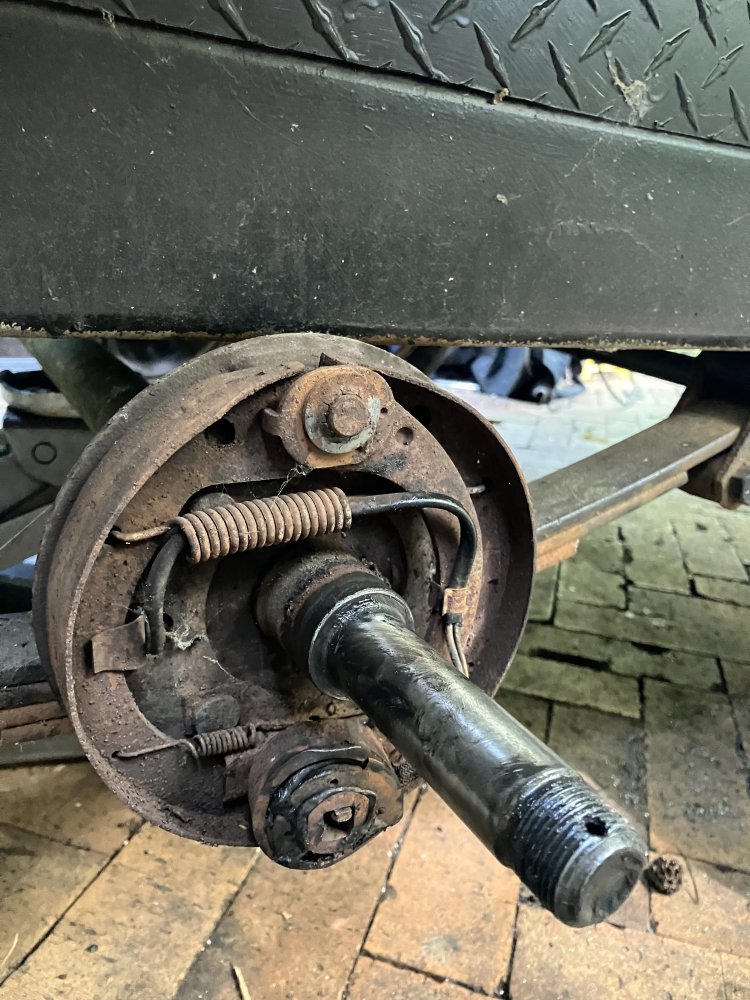 The trailer axles are back together with good bearings, a lot of grease and new seals. I don’t really need the brakes if I’m not carrying anything, but if they’re here before, National and I have the time, I’ll do that to.