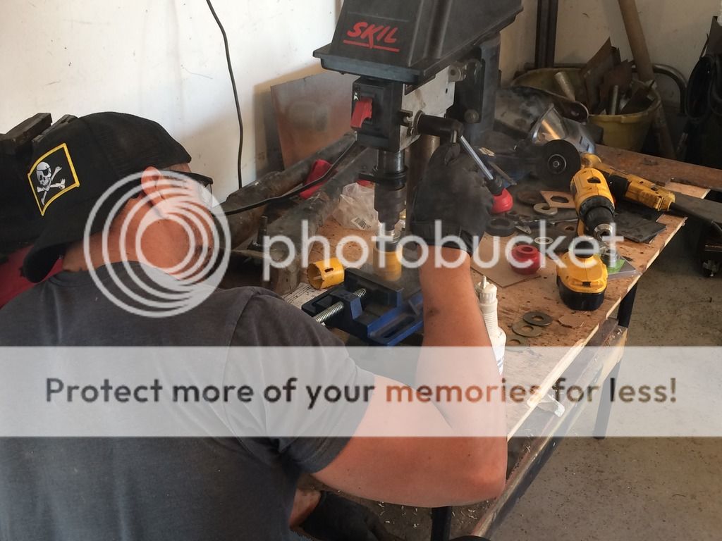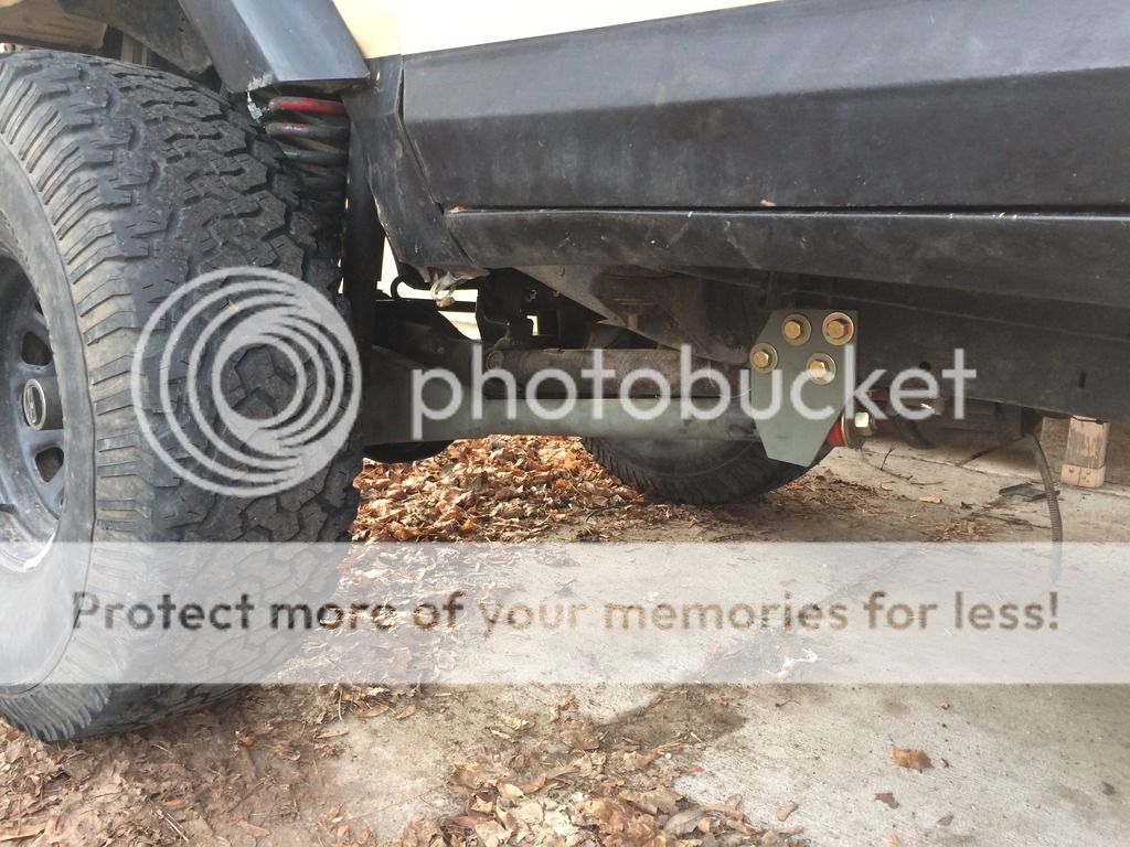 To get the angles we needed, we just put the axle at stock height and followed the angle of the drive line. If i remember right it was like 6 degrees. To cut the hole for the arm we used a 1 5/8" hole saw from lowes(cause home depot didnt have it). Something we also did was used a small portion of galvanized plumbing pipe(dont remember the size) to make a washer or spacer type thing on the back of the bracket so that there was no space in the bushing.