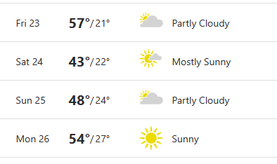 Supposedly might get lows in the upper 30s this weekend. Let’s see how many iguanas fall from the trees!