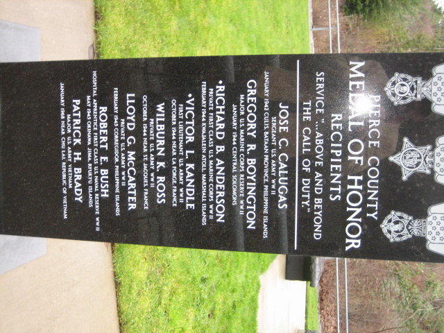 Also, Banner at War Memorial, on the Tacoma Narrows Bridge ( The original "Galloping Gertie" fell into the Narrows in the 40's in a windstorm as a tribute to great engineering ), memorial to Pierce County Medal of Honor recipients (anyone recognize a more famous name on there? ), different view of the Narrows bridges, and the place I work at just for the hell of it