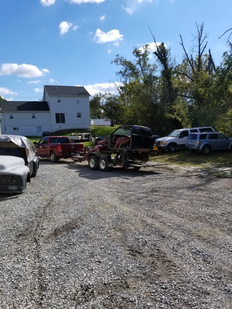 32 Ford firetruck with an S-10 cab the flathead has been locked up for about 10 years had to use a skid loader to get it on the trailer.