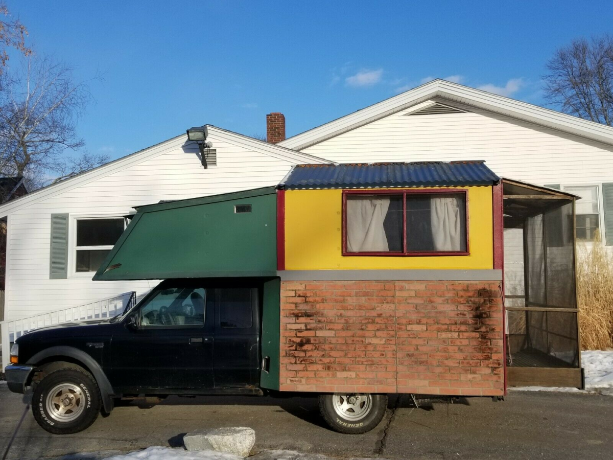 And.... At the Skoolie Festival, this weekend, one couple's bus wasn't ready to travel. So they're camping in their Ranger.