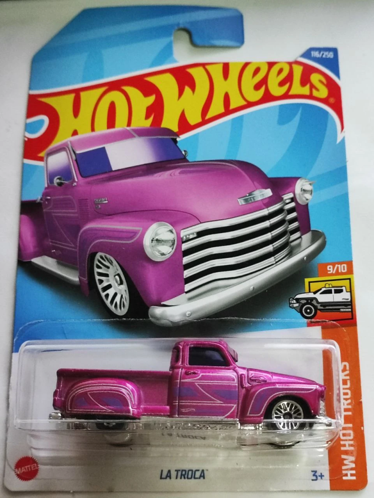 La Troca is based on a 1950 Chevrolet 3100 lowrider. It was retooled in 2020, gaining an actual interior. The casting was also slightly shortened and other cost-saving measures were taken, such as the window lip being cast into the body and made smaller and the truck bed using additional plastic...