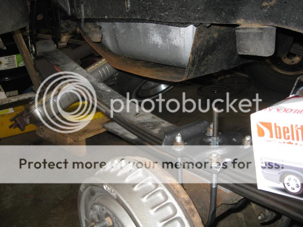 It has explorer 1998 4 leaf springs, belltec 6400 drop shackles, and 2 degree pinion shims (i think i put it in right..thick side of wedge in front)