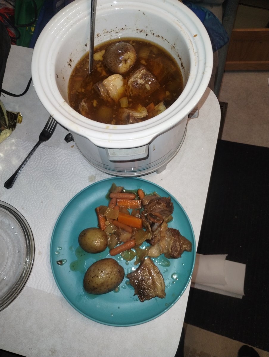 Sounds yummyElk short ribs, potatoes, onion, garlic, BBQ sauce in a slow cooker for 14 hours. I thought View attachment 128137it would be mush but turned out great!